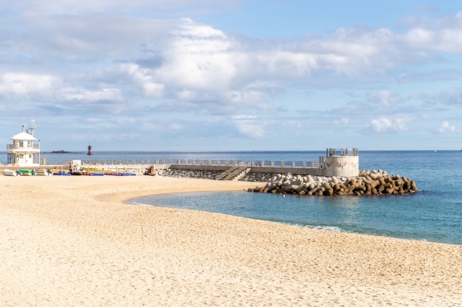경포해변과 이어진 조용한 바닷가입니다. 해변을 가로지르는 솟대다리에서 소원을 빌어보거나 강문항에서 낚시를 즐기기에 좋습니다. 포토존도 많아 인생샷 명소로 유명합니다.